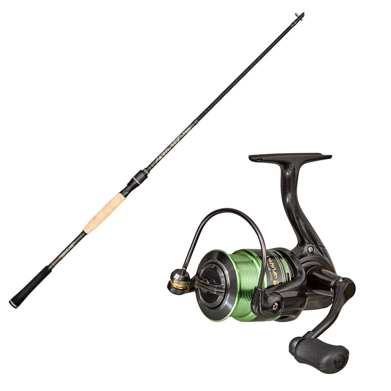 Rute – Gunki Canne Skyward-Force S – 230XXH, 40-140g, 2sec:Längere Spinnruten in verschiedenen Stärken, die für Weitwürfe und das Abdecken von viel Wasser konzipiert sind. Die zusätzliche Länge gibt Ihnen eine bessere Schnurkontrolle und hilft, saubere Schläge zu bekommen, wenn der Fisch anschlägt.Rolle – Gunki GT FV 400:Die Rollen sind geschmeidig zu fischen und haben ein tolles Getriebe. Wir haben an dem Verhältnis der einzelnen Spulengrößen gearbeitet, um den Komfort und die Kontrolle über jeden Einholvorgang zu optimieren. Die Spulen haben die richtige Größe für Geflochtene. Diese langlebigen Rollen verfügen über einen leistungsstarken, präzisen Widerstand und bieten ein fantastisches Preis-Leistungs-Verhältnis!400:• Gewicht: 365g• Lagerungen: 3+1• Getriebeübersetzung: 5.5:1• Schnurfassung: 230m/0,17mm